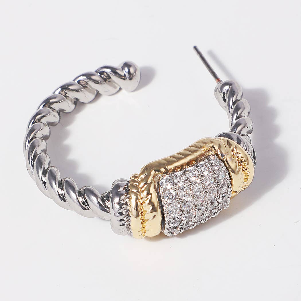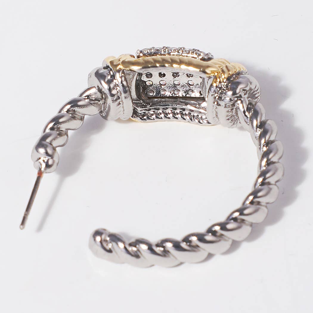 Bar Twisted Hoop 14K Plated Post Earrings - Two-Toned Earrings - Bar Gold Tone Outline - 14K Gold Plated - Perfectly Match with Daily Fashion ** Size: 1.25" Drop Length ** These 14k gold-plated post earrings offer a refined, timeless look with a touch of luxury. Crafted with precision, they feature a smooth, lustrous finish that radiates sophistication. The 14k gold plating provides a rich, warm glow, while maintaining durability and resistance to tarnish, ensuring long-lasting wear. With a simple yet elegant design, these earrings are perfect for everyday wear or special occasions, adding a subtle hint of glamour to any outfit. Their secure post-back closure ensures comfort and peace of mind, making them a versatile, must-have addition to any jewelry collection.