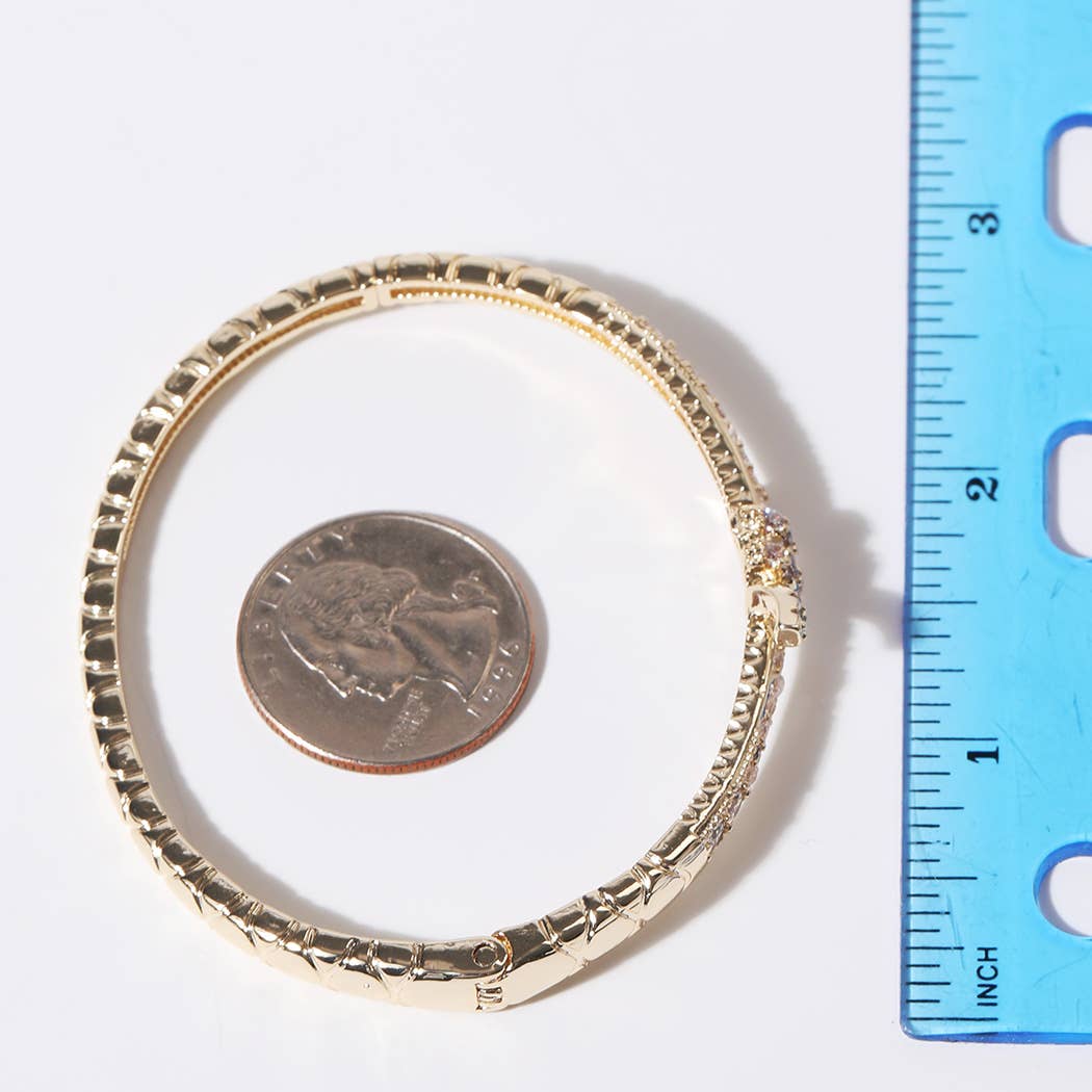 Knotted Design Gold Plated Bangle Bracelet - Textured Bangle - Gold Plated Bracelet - Lead and Nickel Compliant ** Size: 2.5" Diameter ** Elevate your jewelry collection with this Gold Plated Bangle Bracelet, a timeless piece that exudes elegance and sophistication. Crafted from high-quality materials and coated in radiant gold plating, this bangle offers a luxurious shine and durability. Its sleek, minimalist design makes it perfect for everyday wear or special occasions. Designed for comfort, the smooth, polished finish ensures a seamless fit on your wrist. Whether worn alone for a classic look or stacked with other bracelets for a bold statement, this versatile accessory adds a touch of glamour to any outfit. A must-have for those who love refined, effortless style.