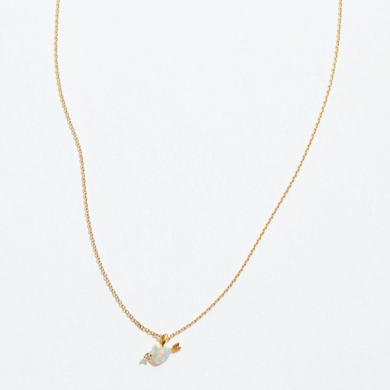 Gold Opal Heart Arrow Pendant Necklace
