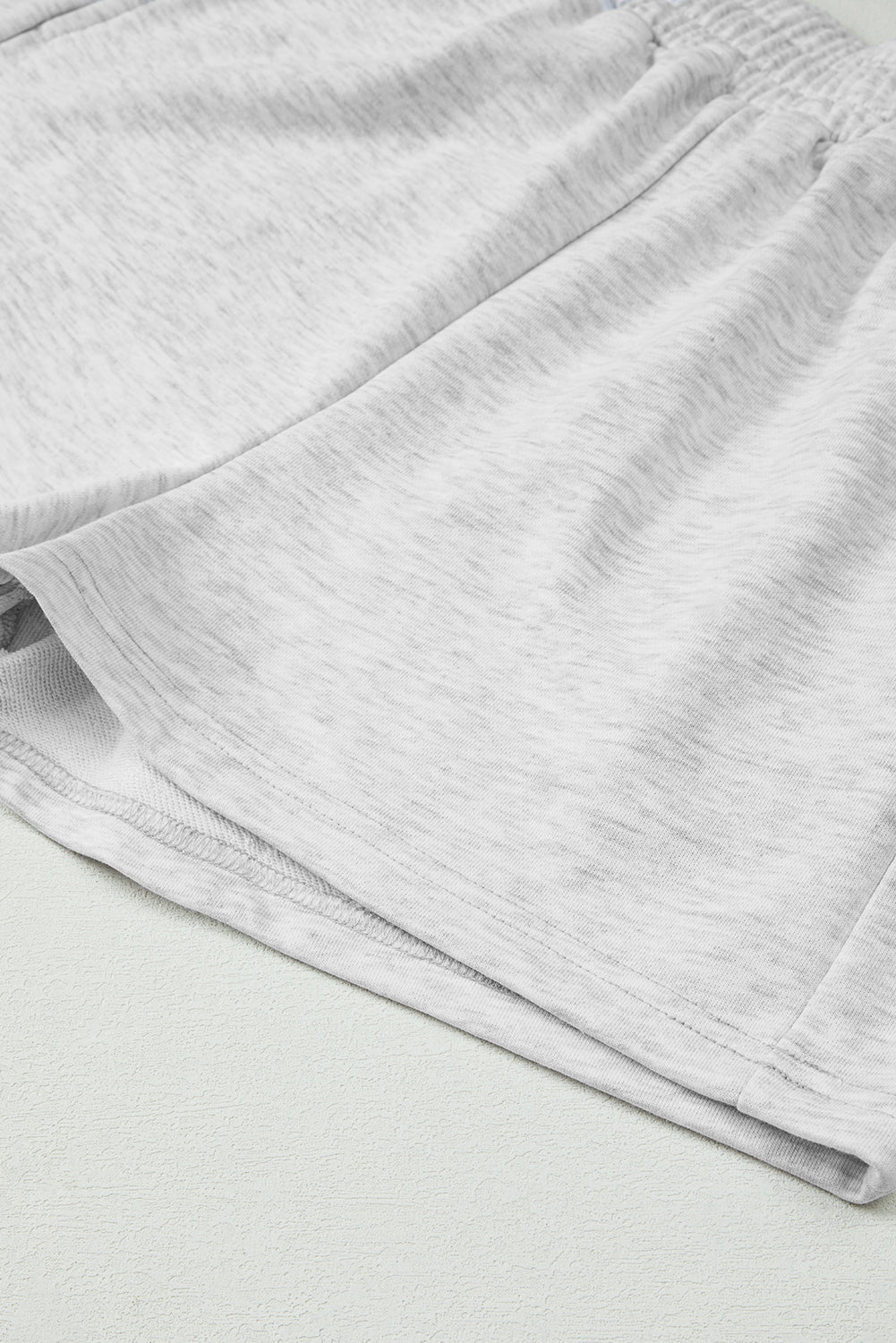 Light Grey Girly Bow Embroidered Detail Puff Sleeve Pullover 2pcs Short Set