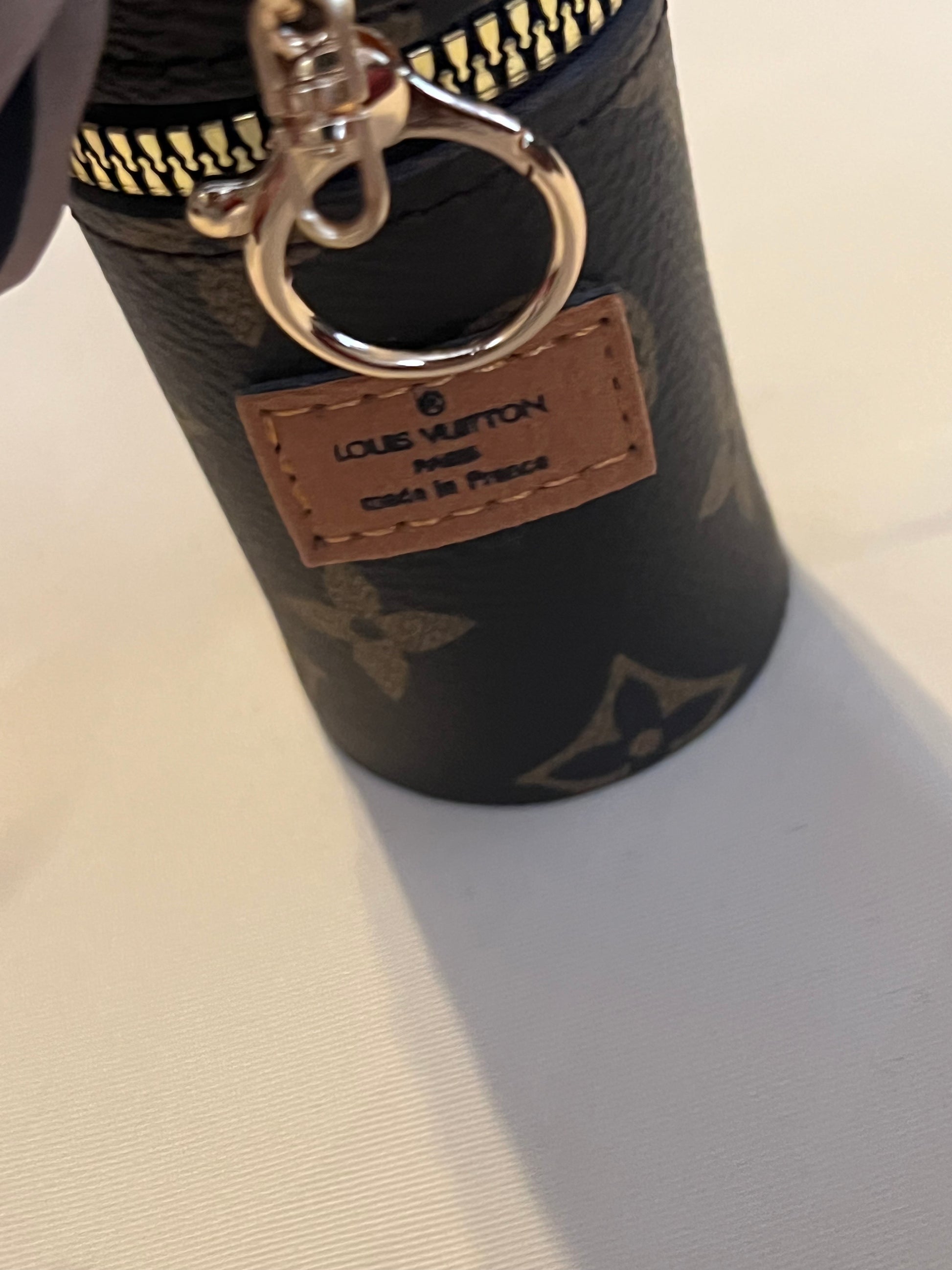 Carry your favorite lipstick in style with this charming bucket keychain, available in rich brown monogram or sleek black embossed finishes. The compact design keeps your lip color protected and within reach, while an attached delicate scarf adds a touch of elegance. Perfect for purses, bags, or as a thoughtful gift for beauty lovers who appreciate practical accessories with personality. A cute essential for on-the-go glam.
