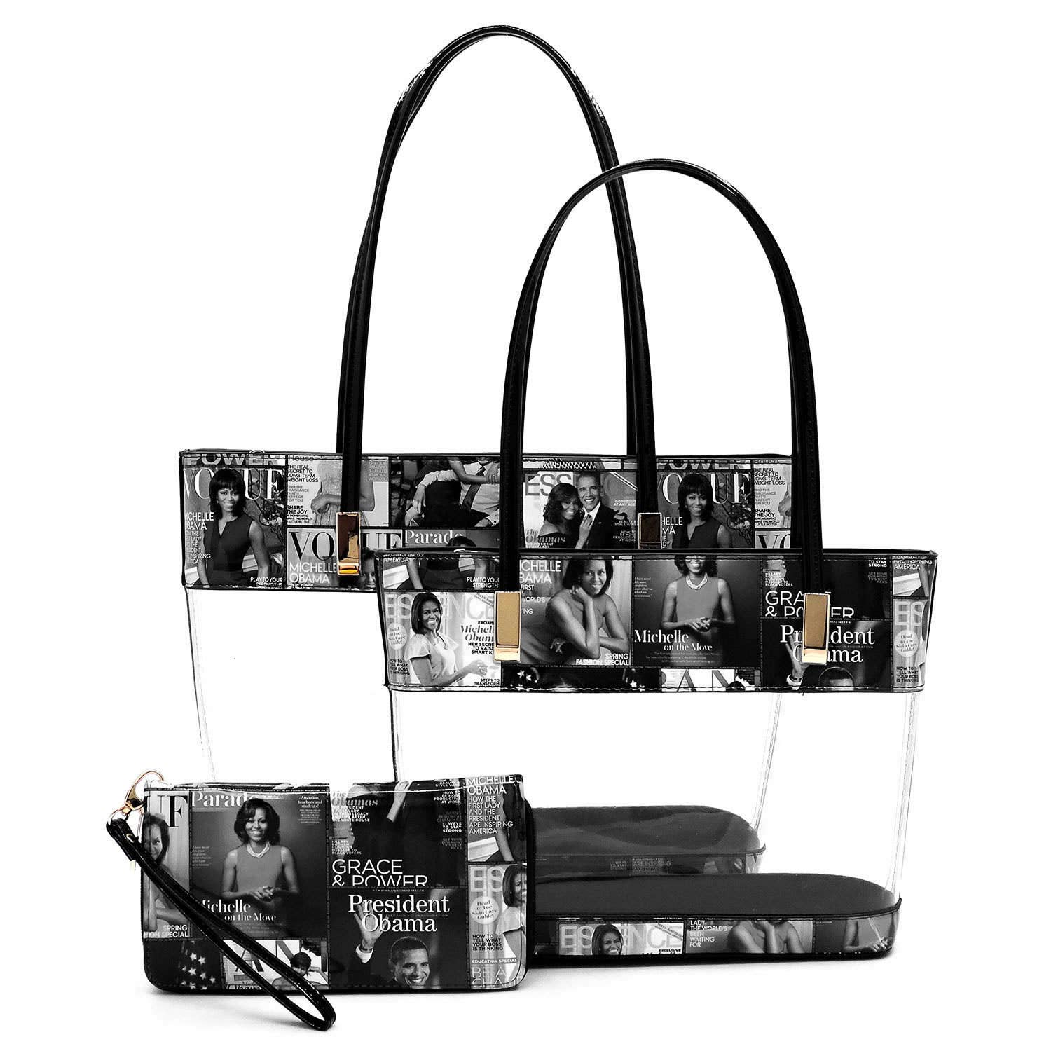 Magazine Cover Collage See Thru 3-in-1 Tote Set