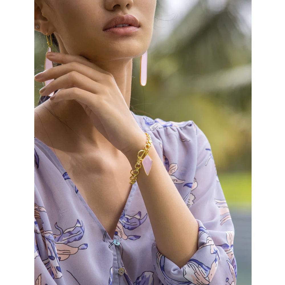 A tiny little bracelet for that extra craving embellished with pink quartz with a T-lock system. Simplicity at its best!