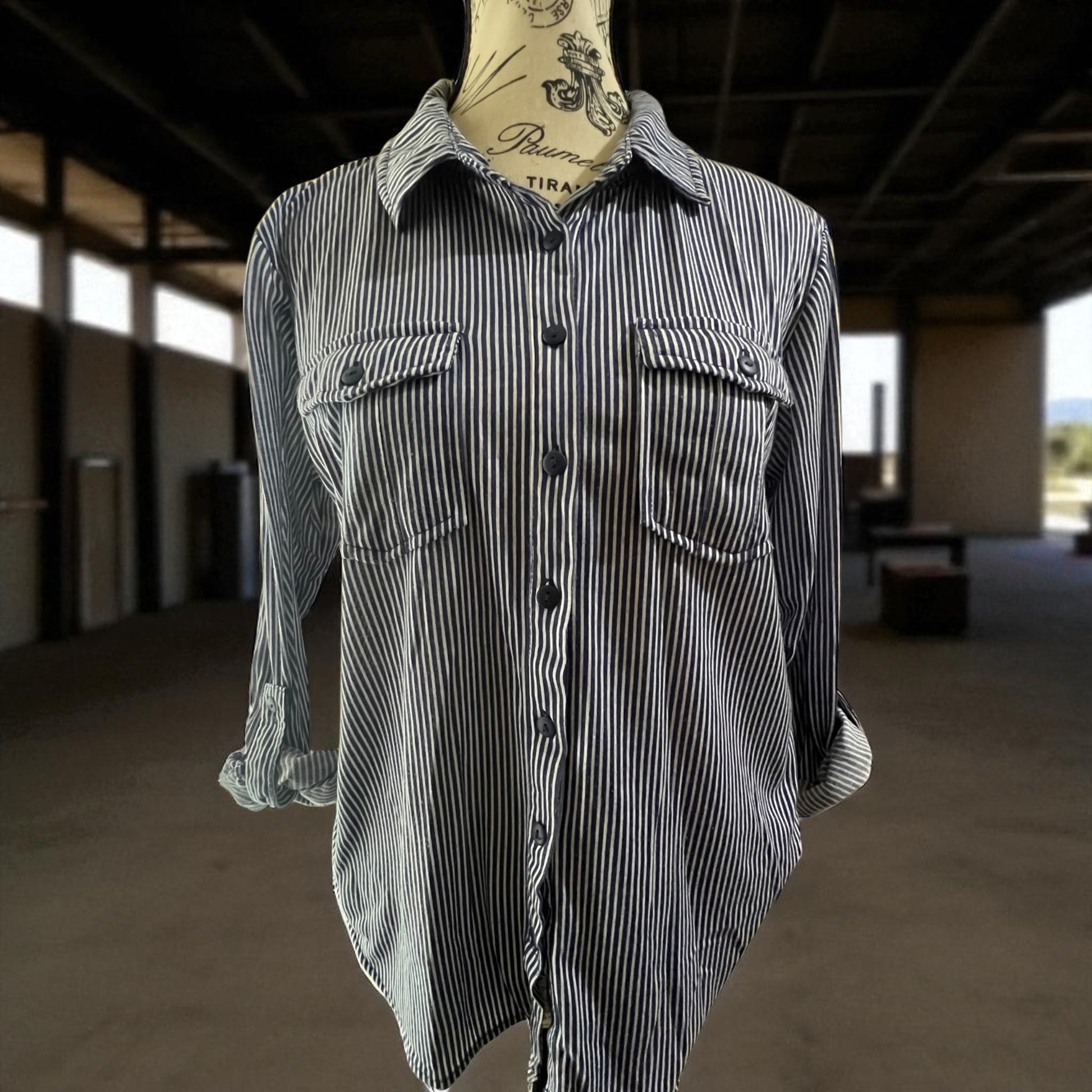 Women's Button Down Pinstripe Shirt